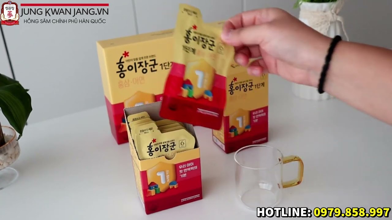 Hướng Dẫn Sử Ddụng Nước Hồng Sâm Trẻ Em Jung Kwan Jang Số 1 (15ml  x 30 Gói):